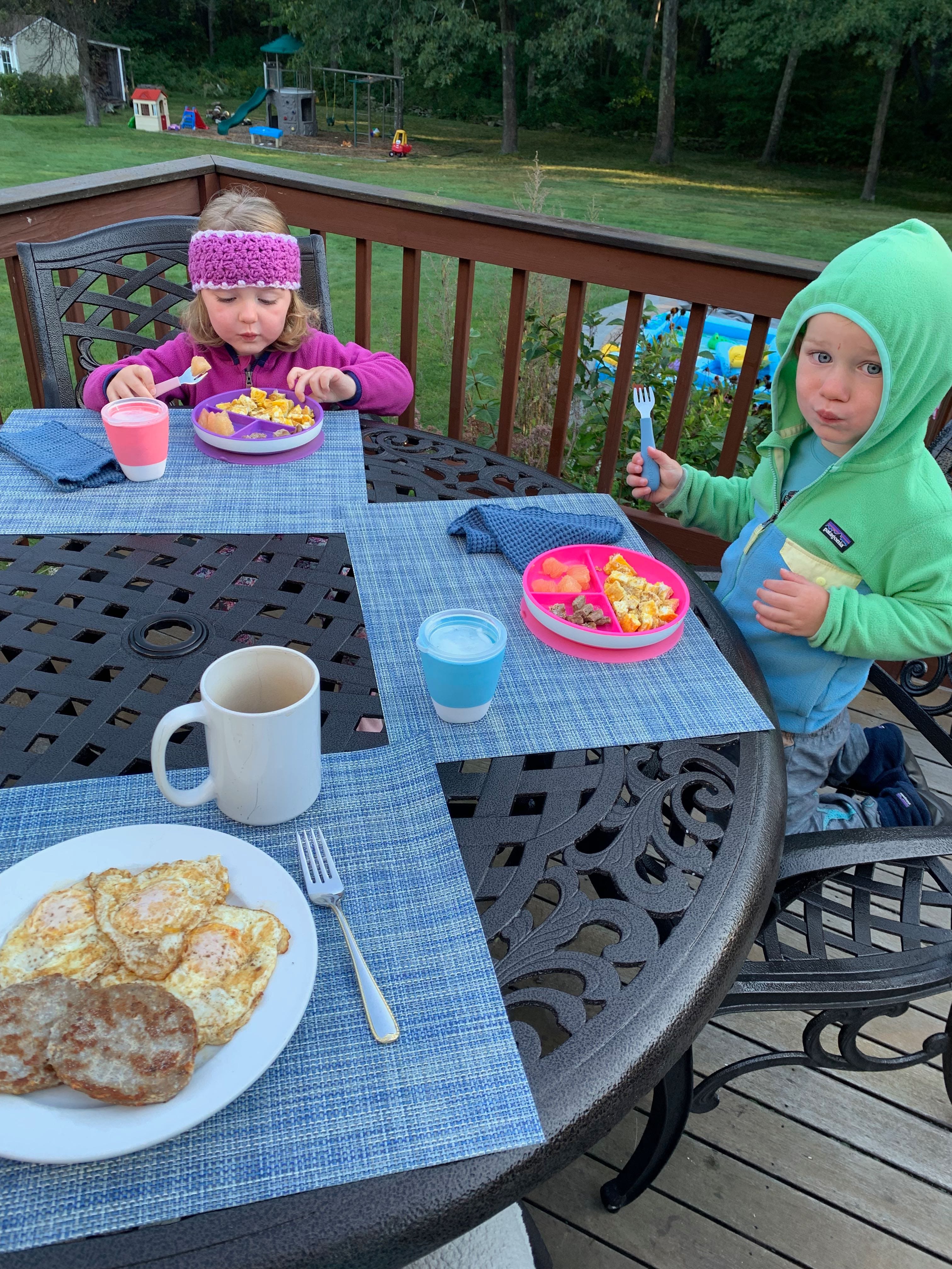 As I finished frying up some eggs and sausage for our family breakfast this morning, while looking out the window at our beautiful outdoor world, I felt the immense draw to bring everyone outside to eat. Maybe the draw was a result of me opening my heart and soul to nature, to the woods, over the past several months, that it was free to speak to me. So, I yelled out, “Breakfast is ready, and we’re eating outside!” which initially dismayed my wife, but she quickly embraced the idea and the urge of nature’ embrace, even dressing our 3-month-old for the occasion.